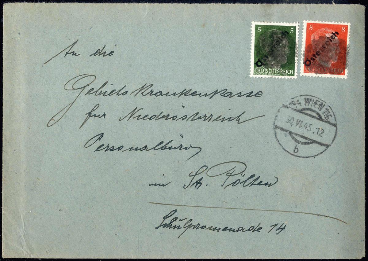 | Zusatzinformationen und Suchstichworte: | 75. Viennafil Live-Auktion 29. November - 2. Dezember 2022 Los 2216 Österreich Provisorien 1945 1945, I Wiener Aushilfsausgabe, 5 + 8 Pf auf Brief von Wien 116 nach St. Pölten vom 30.6. mit Klecksstempel (Sturzeis 116/2 (WK2)), um 1 Pf überfrankiert, Befund Glavanovitz Ausruf 100,00 EUR |
