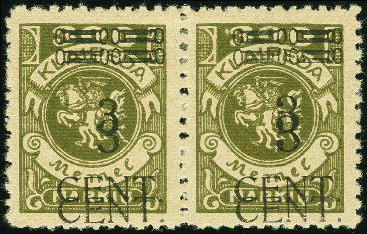 | Zusatzinformationen und Suchstichworte: | Heinrich Köhler 379. Auktion 19. - 24. September 2022 Los 3538 Memel 1923, 3 CENT. a. 300 M. mit gleichstarkem Doppelaufdruck, waager. Typenpaar V/III, sehr selten, Pra., Kurzbefund Haslau Ausruf 200,00 EUR |