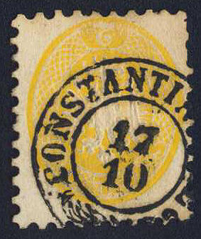 | Zusatzinformationen und Suchstichworte: | Merkurphila 51. Auktion 25. - 26. November 2022 Los 718 Österreich Post in der Levante Österr. Post in der Levante, 1864, V 19, 2 Soldi weit gezähnt mit Stempel CONSTANTINOPEL, Zähnung siehe Foto, Attest Hochleutner, KW 530 € Ausruf 60,00 EUR |