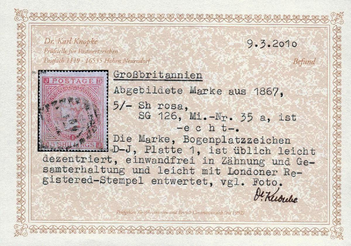 | Zusatzinformationen und Suchstichworte: | 31. Schlegel Auktionshaus Auktion 14. - 18. November 2022 Los 7141 Grossbritannien 1867, 5 Sh. Königin Viktoria rosalila, gest. Einzelwert, farbfrisch und gut gezähnt, üblich leicht dezentriert, Fotobefund Dr. Knopke (ME 400,-)" Ausruf 80,00 EUR |