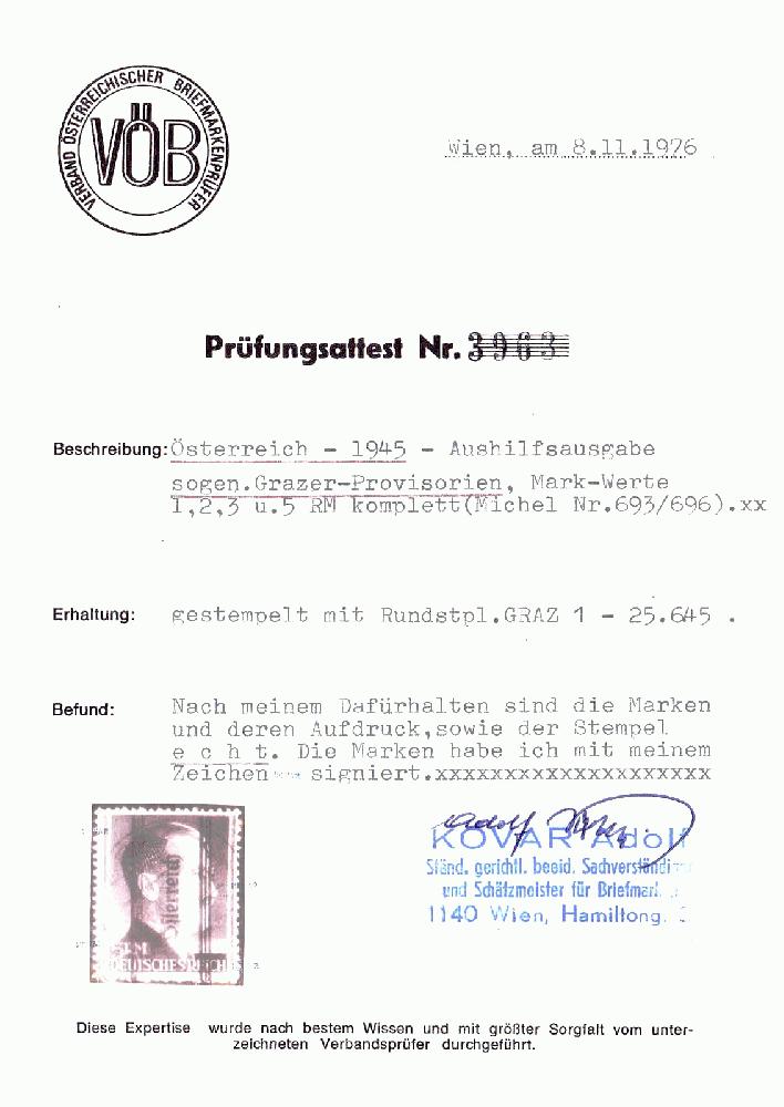 | Prüfer: | Kovar, Adolf (VÖB (Verband Österreichischer Briefmarkenprüfer)) |
