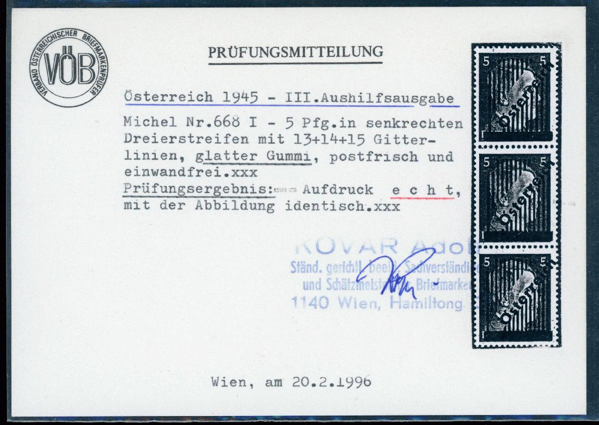 | Prüfer: | Kovar, Adolf (VÖB (Verband Österreichischer Briefmarkenprüfer)) |