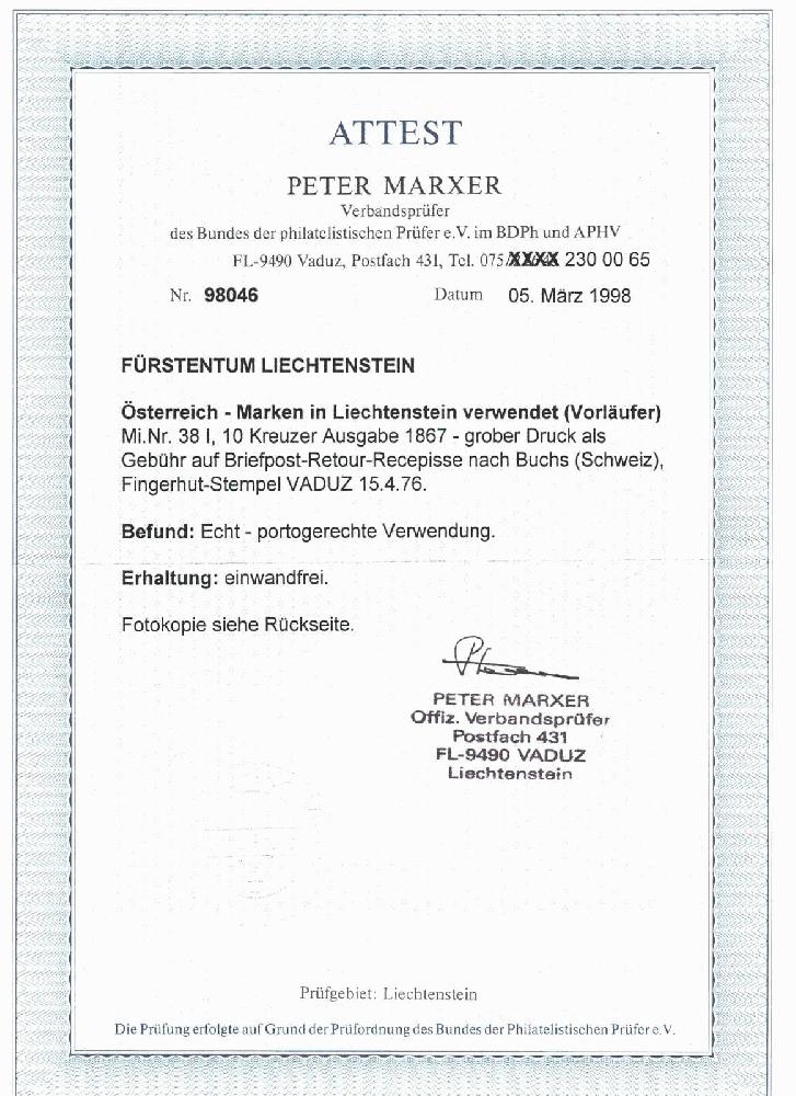 | Prüfer: | Marxer, Peter (BPP (Bund Philatelistischer Prüfer)) |