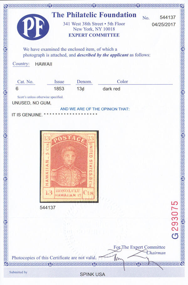 | Prüfer: | The Philatelic Foundation, (Prüferkommission) |