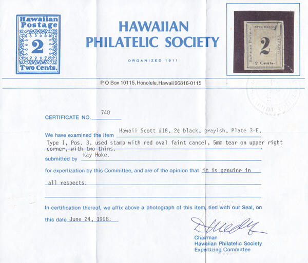 | Prüfer: | Hawaiian, Philatelic Society (Prüferkommission) |