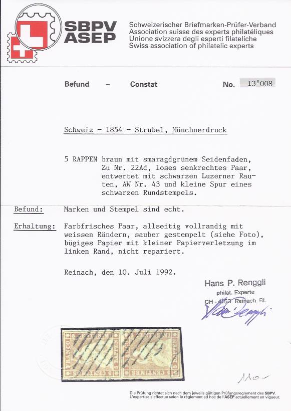 | Prüfer: | Renggli, Hans P. (SBPV / ASEP (Schweizerischer Briefmarken-Prüfer-Verband)) |
