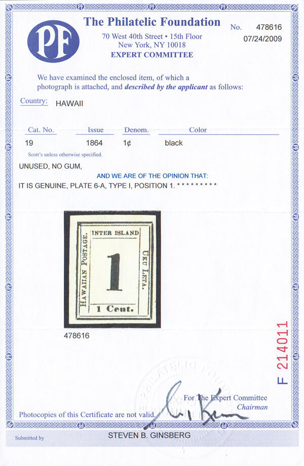 | Prüfer: | The Philatelic Foundation, (Prüferkommission) |