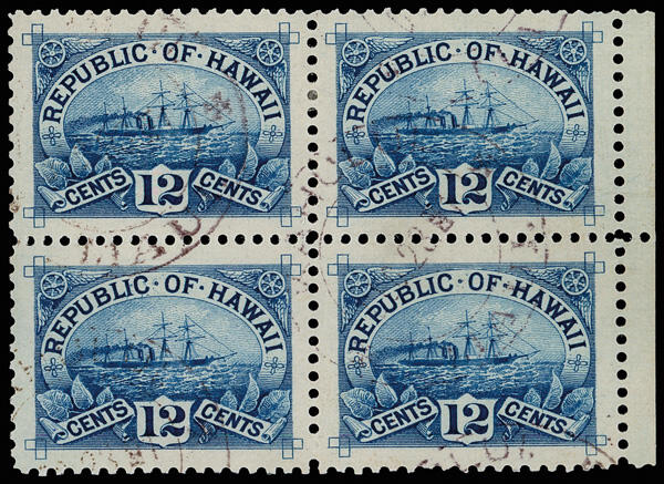 | Zusatzinformationen und Suchstichworte: | Kelleher Auktion 2002. - The Kelleher Club Sale 18. - 20. Oktober 2022 Los 2174 Hawaii 1894, S. S. "Arawa", 12¢ blau (Scott 78), Viererblock vom rechten Rand, ein klingt, perfekt zentriert Block mit barely-there Kahului/Maui Zweioval Stempeln, extrem fein bis hervorragend, "95" ist die höchsten ausgezeichnet Stufe in SMQ, mit 2022 P. S. A. G. Attest eingestuft XF-SUP 95. SMQ XF-SUP 95; $220 als Einzelmarken. Ausruf 100,00 USD |