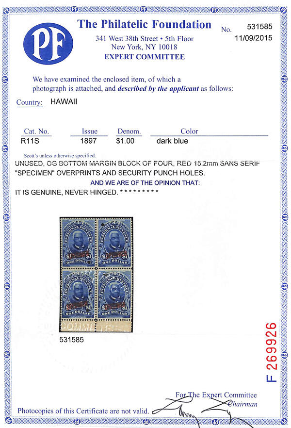 | Prüfer: | The Philatelic Foundation, (Prüferkommission) |