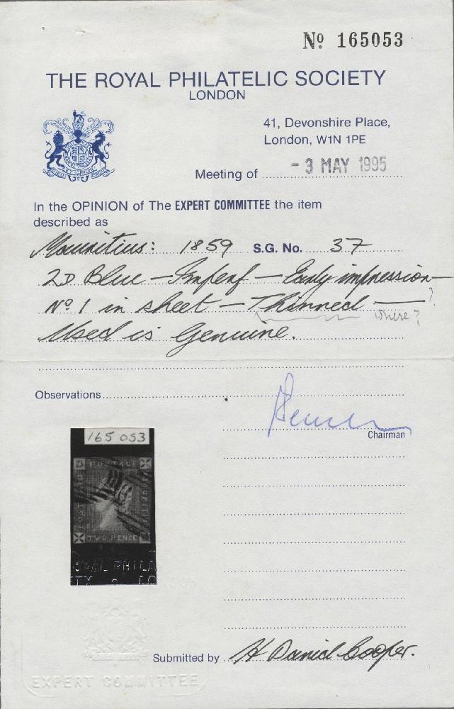 | Prüfer: | RPSL, Royal Philatelic Society (Prüferkommission) |