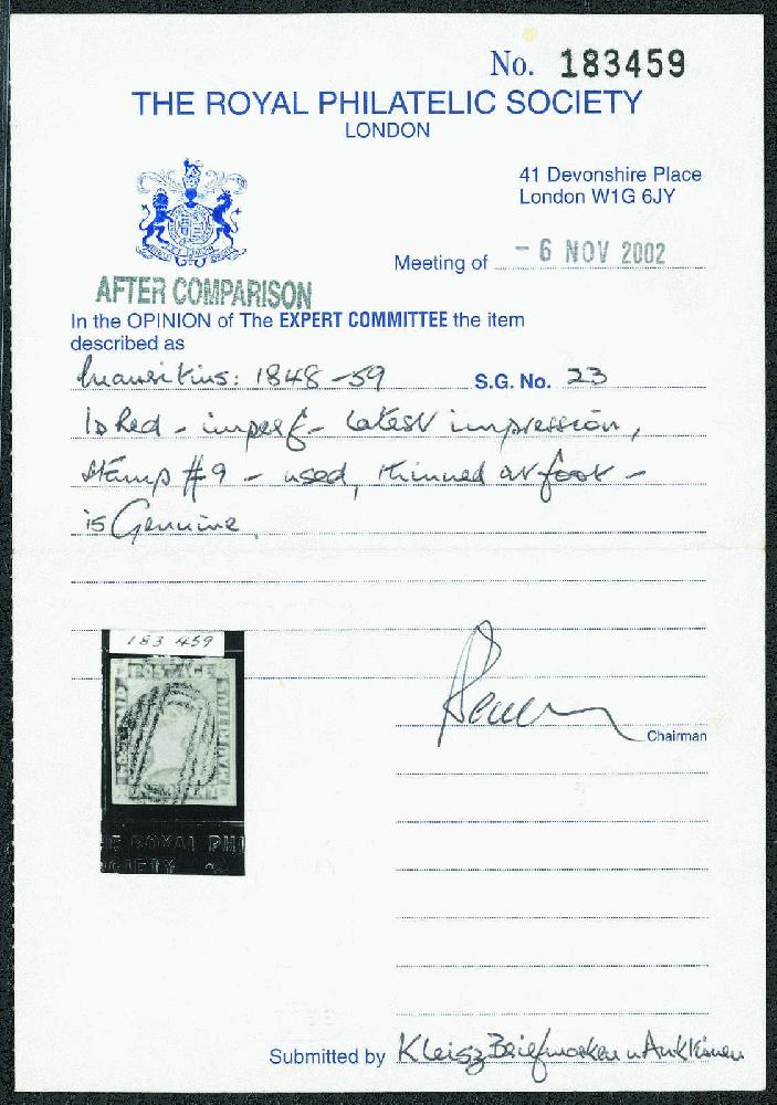 | Prüfer: | RPSL, Royal Philatelic Society (Prüferkommission) |