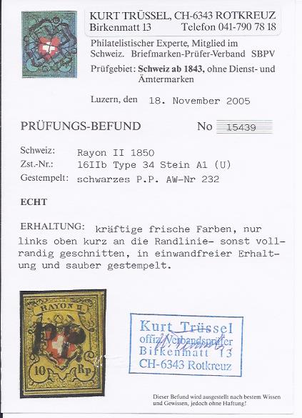 | Prüfer: | Trüssel, Kurt (SBPV / ASEP (Schweizerischer Briefmarken-Prüfer-Verband)) |