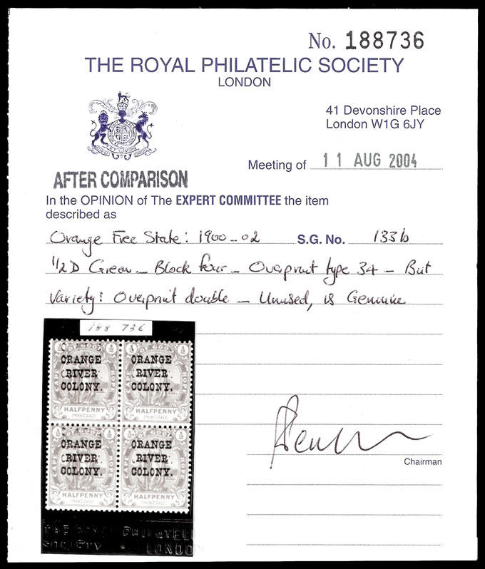 | Prüfer: | RPSL, Royal Philatelic Society (Prüferkommission) |