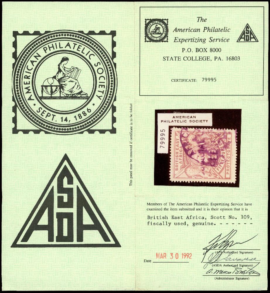 | Prüfgebiet: | Kenya, Uganda, Tanganyika (Ostafrikan. Gemein., 1901-1977) |