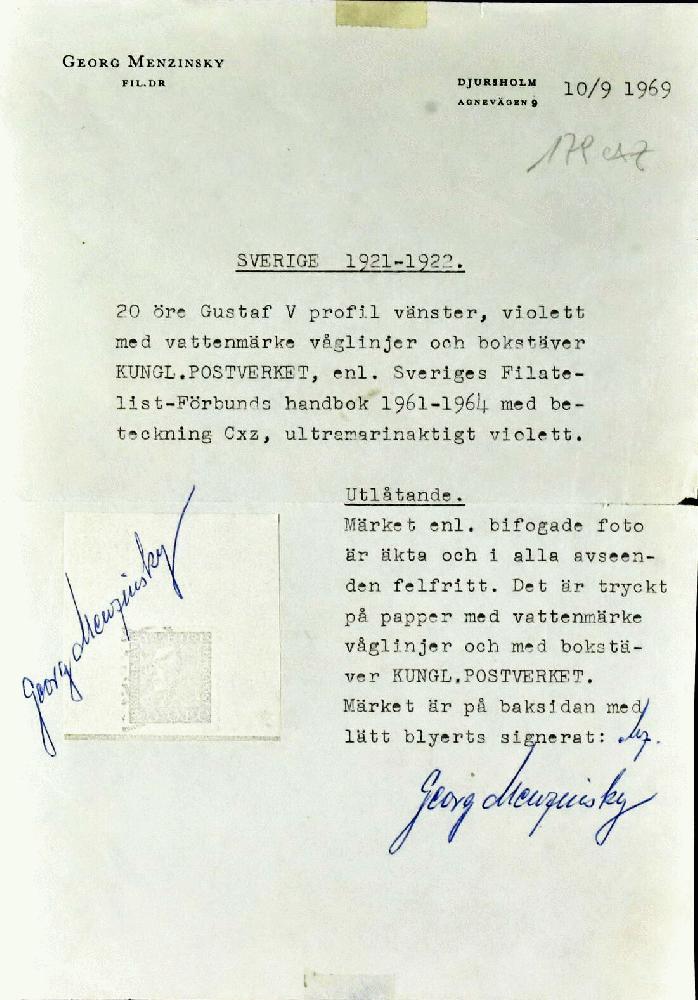 | Zusatzinformationen und Suchstichworte: | AB Philea 397. Auktion Los 2250 Schweden Sweden, Facit 179Acxz or Scott 170 used, 20 öre violet with wmk lines+KPV. Well-centred, fresh and beautiful copy without any faults, cancelled in 1921, with signature and certificate by Menzinsky. Of the only two known examples of this extraordinary rarity, this is in a class of its own. A FANTASTIC EXHIBITION ITEM. Ex. Skandinavisk Filateli 1989. The other known copy, Ex. Beckeman, was recently sold for 120.000+ % Ausruf 4.546,00 EUR |