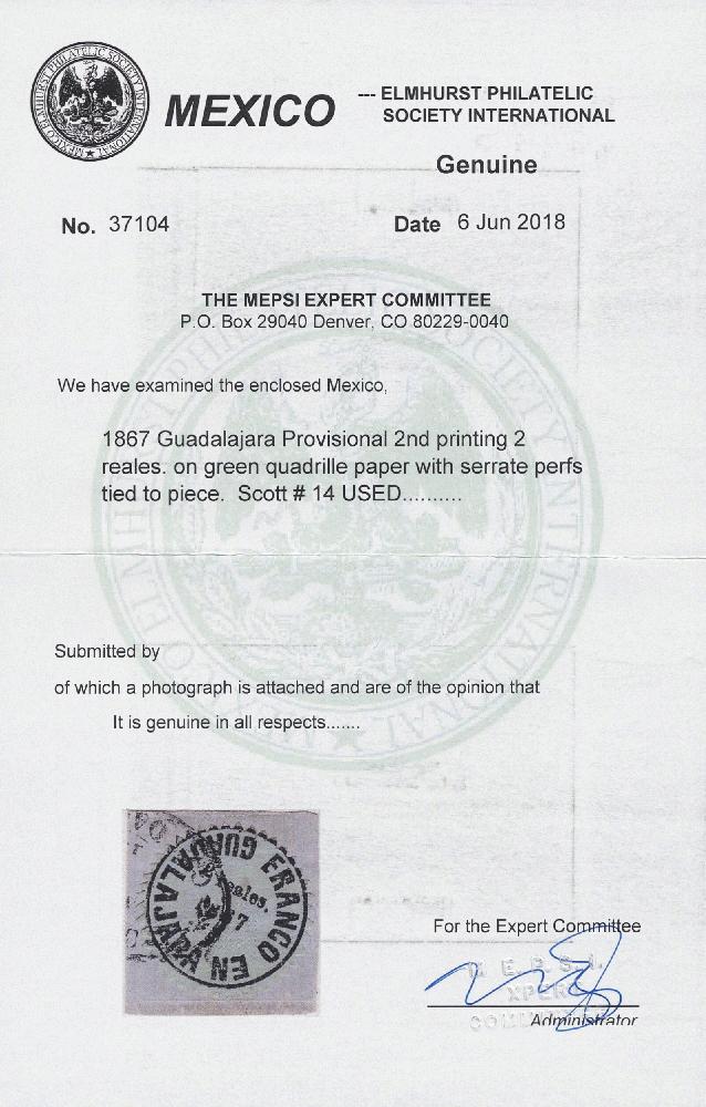 | Prüfer: | MEPSI, Mexico Elmhurst Philatelic Society Inter (Prüferkommission) |
