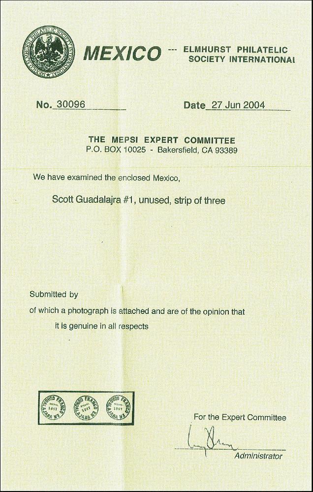 | Prüfer: | MEPSI, Mexico Elmhurst Philatelic Society Inter (Prüferkommission) |