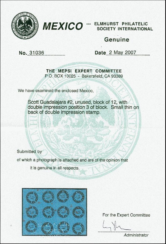 | Prüfer: | MEPSI, Mexico Elmhurst Philatelic Society Inter (Prüferkommission) |