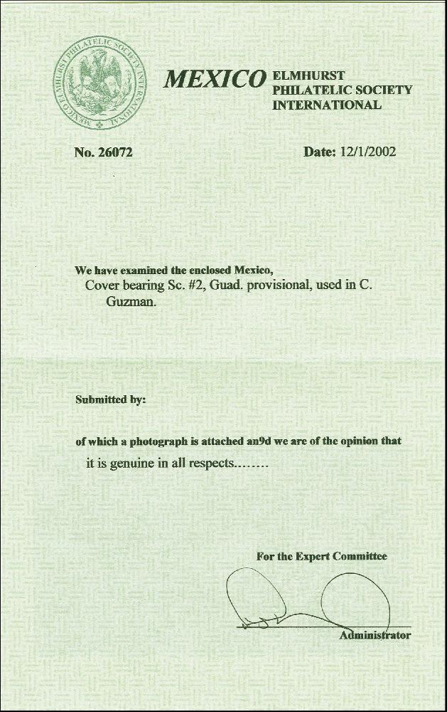 | Prüfer: | MEPSI, Mexico Elmhurst Philatelic Society Inter (Prüferkommission) |