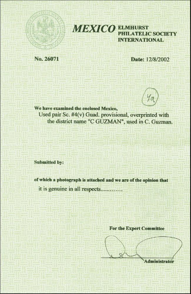 | Prüfer: | MEPSI, Mexico Elmhurst Philatelic Society Inter (Prüferkommission) |