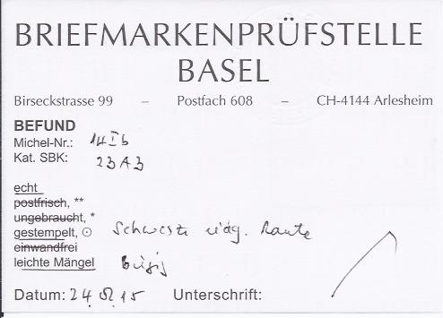 | Prüfer: | Eichele, Martin (BPB (Briefmarkenprüfstelle Basel)) |