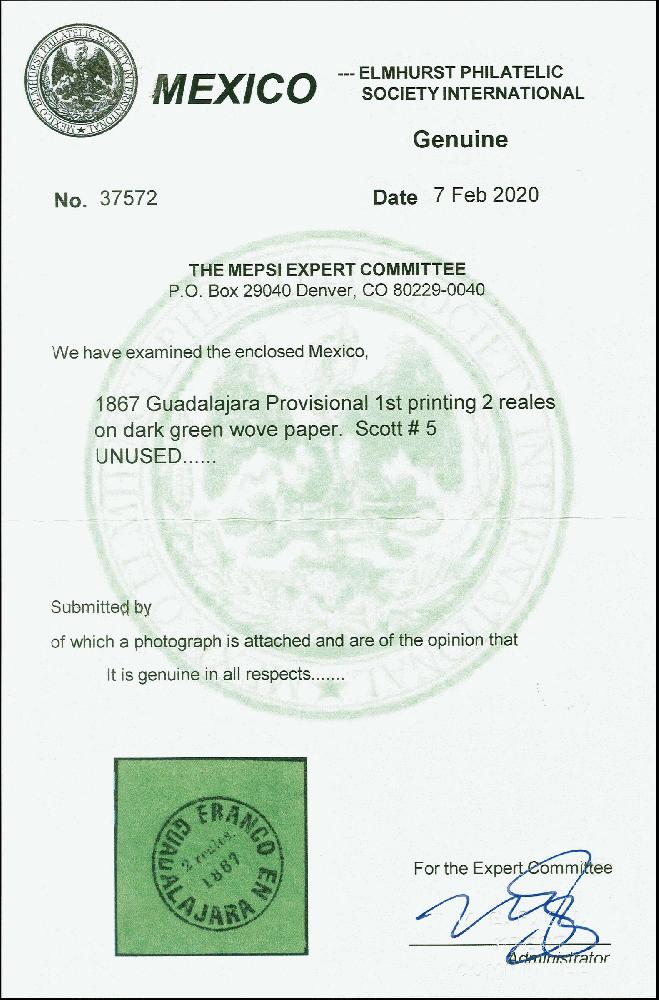| Prüfer: | MEPSI, Mexico Elmhurst Philatelic Society Inter (Prüferkommission) |