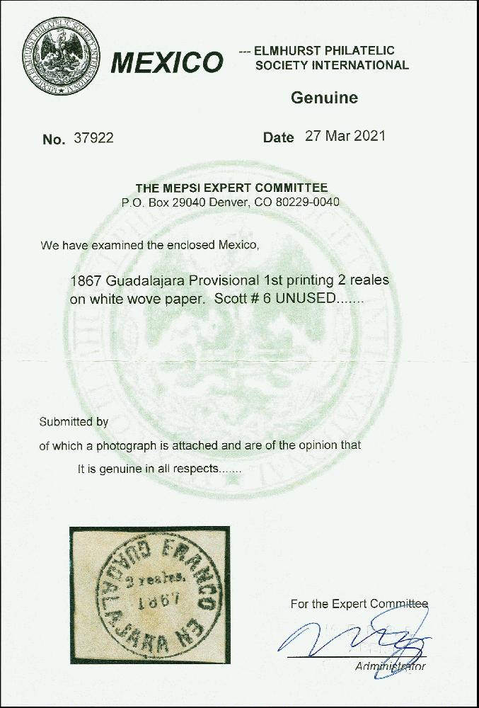 | Prüfer: | MEPSI, Mexico Elmhurst Philatelic Society Inter (Prüferkommission) |