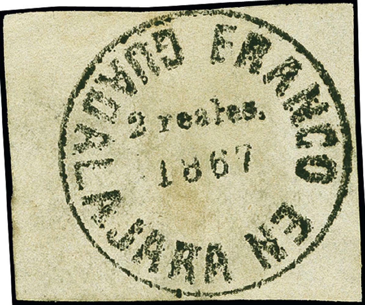 | Zusatzinformationen und Suchstichworte: | Heinrich Köhler 379. Auktion 19. - 24. September 2022 Los 1625 Mexiko Lokalausgaben 2 reales on white, clear to large margins, unused without gum, very fine. The only recorded unused example of this stamp. Certificate MEPSI (2021) Zuschlag 6.400,00 EUR |