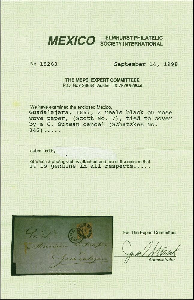 | Prüfer: | MEPSI, Mexico Elmhurst Philatelic Society Inter (Prüferkommission) |