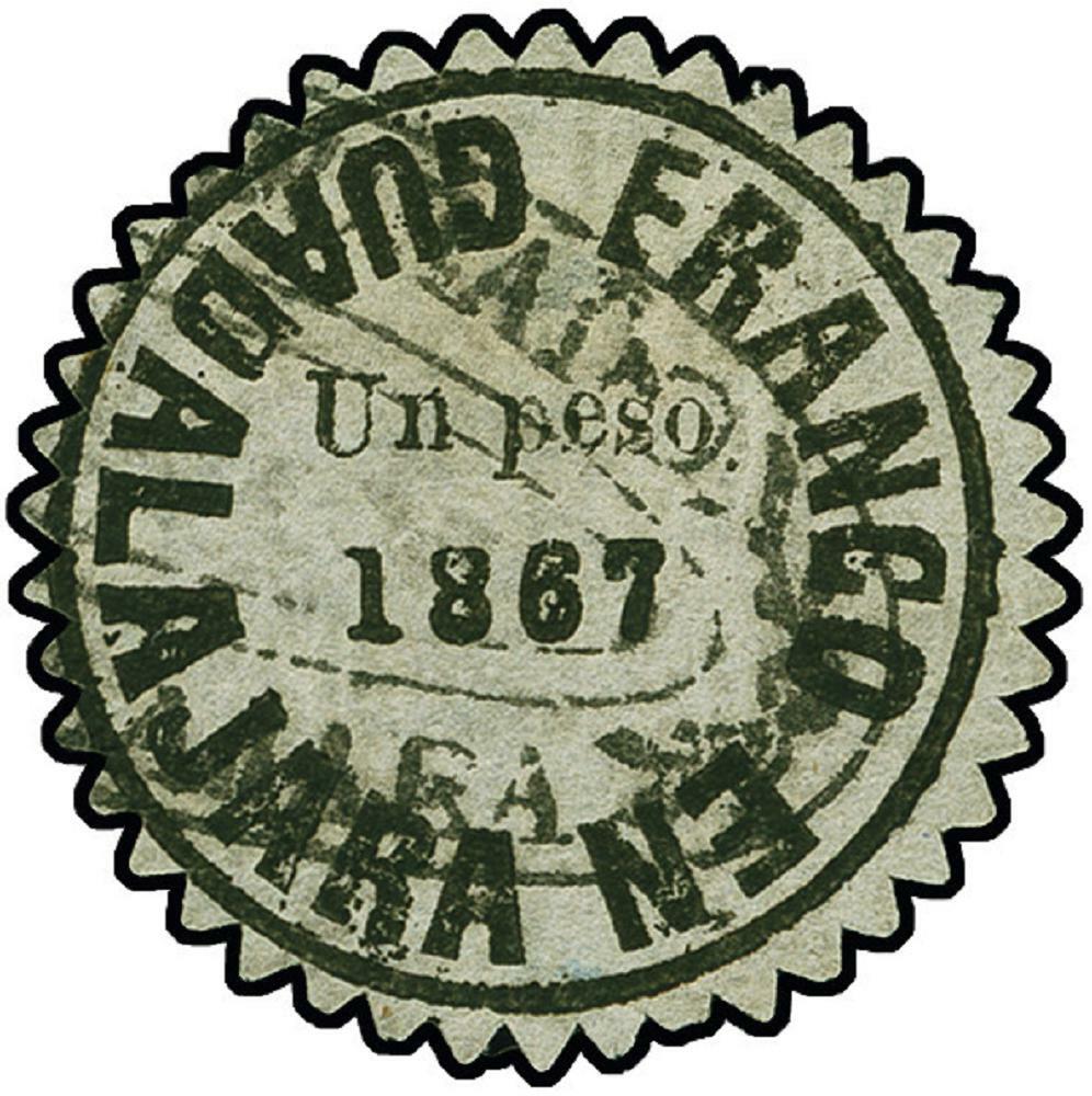 | Zusatzinformationen und Suchstichworte: | Heinrich Köhler 379. Auktion 19. - 24. September 2022 Los 1642 Mexiko Lokalausgaben Thin quadrille paper, serrated, Un peso on lilac, lightly used with "FRANQUEADO GUADALAJARA", small hinge thin, otherwise very fine and fresh. Only one further used example has been recorded of this stamp. A great rarity. Certificate MEPSI (2019) Ausruf 4.000,00 EUR |