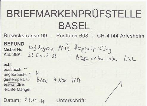 | Prüfer: | Eichele, Martin (BPB (Briefmarkenprüfstelle Basel)) |