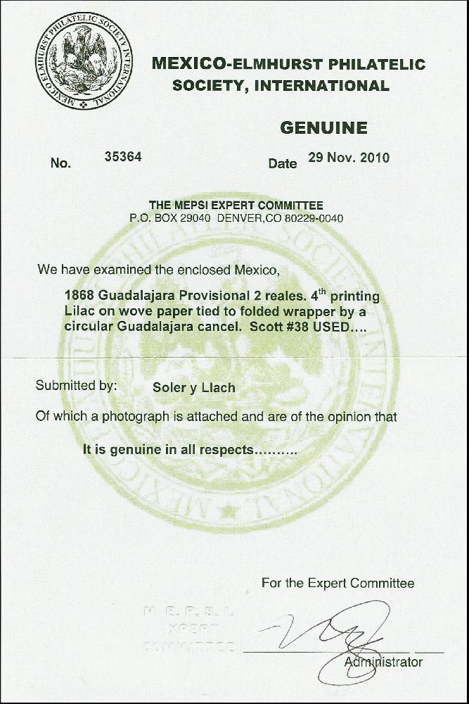 | Prüfer: | MEPSI, Mexico Elmhurst Philatelic Society Inter (Prüferkommission) |