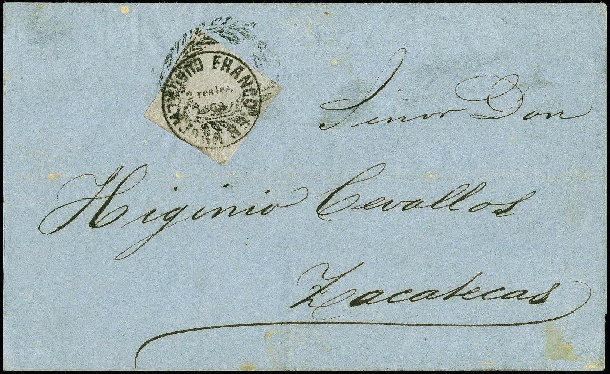 | Zusatzinformationen und Suchstichworte: | Heinrich Köhler 379. Auktion 19. - 24. September 2022 Los 1649 Mexiko Lokalausgaben 1868, 4th printing, laid batonne paper, 2 reales on lilac, tied by wreath cancel to letter sheet to Zacatecas, very fine, certificate MEPSI (2010) Zuschlag 160,00 EUR |