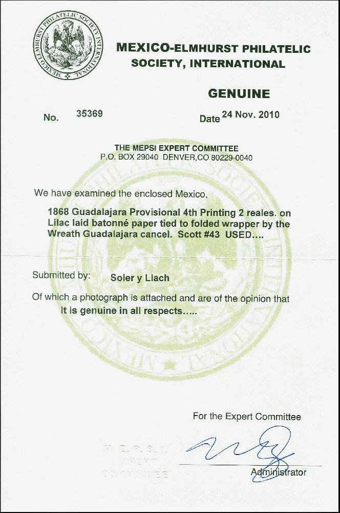 | Prüfer: | MEPSI, Mexico Elmhurst Philatelic Society Inter (Prüferkommission) |