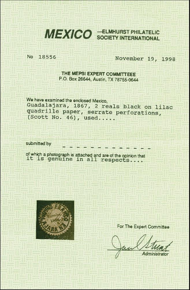 | Prüfer: | MEPSI, Mexico Elmhurst Philatelic Society Inter (Prüferkommission) |