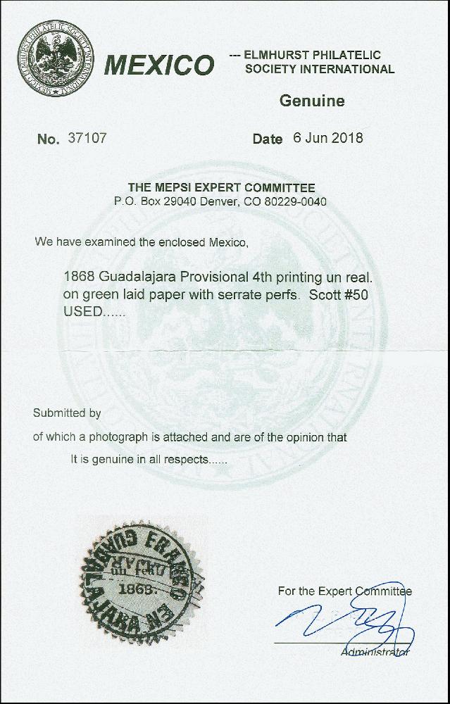 | Prüfer: | MEPSI, Mexico Elmhurst Philatelic Society Inter (Prüferkommission) |