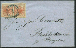| Zusatzinformationen und Suchstichworte: | nordphila 487. Briefmarkenfernauktion 10. Oktober 2022 Los 4501 Österreich Ausgabe 1867 1855, 3 Kr. rot, Handpapier, Type IIIa, waagerechtes breitrandiges Paar auf Brief mit blauem K2 "RICHENBURG", Pracht, Fotoattest Bach/Eichele Ausruf 380,00 EUR |