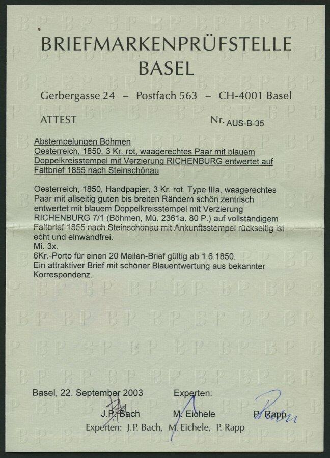 | Prüfer: | Bach, Jean-Paul, Eichele Martin und, Rapp, Peter (BPB (Briefmarkenprüfstelle Basel)) |