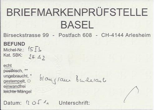 | Prüfer: | Eichele, Martin (BPB (Briefmarkenprüfstelle Basel)) |