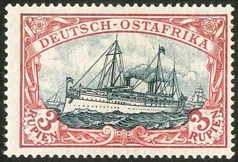 | Zusatzinformationen und Suchstichworte: | 230. Karl Pfankuch & Co Auktion 7. - 8. Dezember 2022 Los 1879 Deutsche Kolonien Ostafrika 3 Rupien b-Farbe, Mittelstück der Type I, sauber * mit echter Gummierung, signiert Siebentritt und aktuelles Fotoattest J.-Lantelme, gut gezähnt, bis auf eine leichte Verfärbung der Rahmenfabe einwandfrei. M€ 2.000.- Selten! Ausruf 200,00 EUR |
