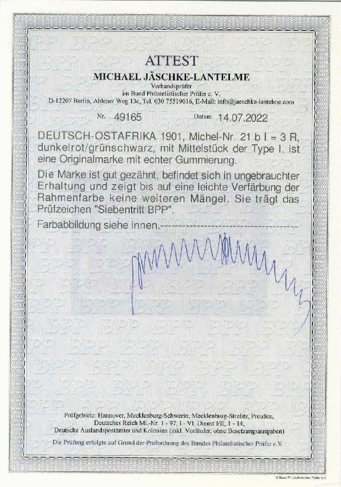 | Prüfer: | Jäschke-Lantelme, Michael (BPP (Bund Philatelistischer Prüfer)) |