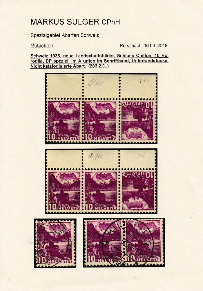 | Zusatzinformationen und Suchstichworte: | Leandra Honegger Briefmarken 4. November 2022 Los 966 Schweiz Abarten (Frei- und Werbemarken) ABARTEN - FREI- & WERBEMARKEN 1936, Schloss Chillon, nicht katalogisierte DP im A unten im Schriftband, postfrisch geriffelt und glatter Gummi, dazu zwei Marken gestempelt mit der gleichen Abart (4). Gutachten Sulger Ausruf 100,00 CHF |