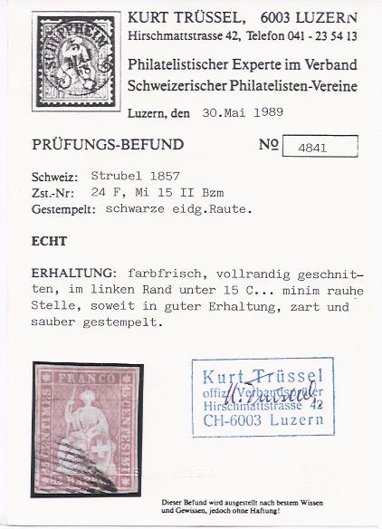 | Prüfer: | Trüssel, Kurt (SBPV / ASEP (Schweizerischer Briefmarken-Prüfer-Verband)) |