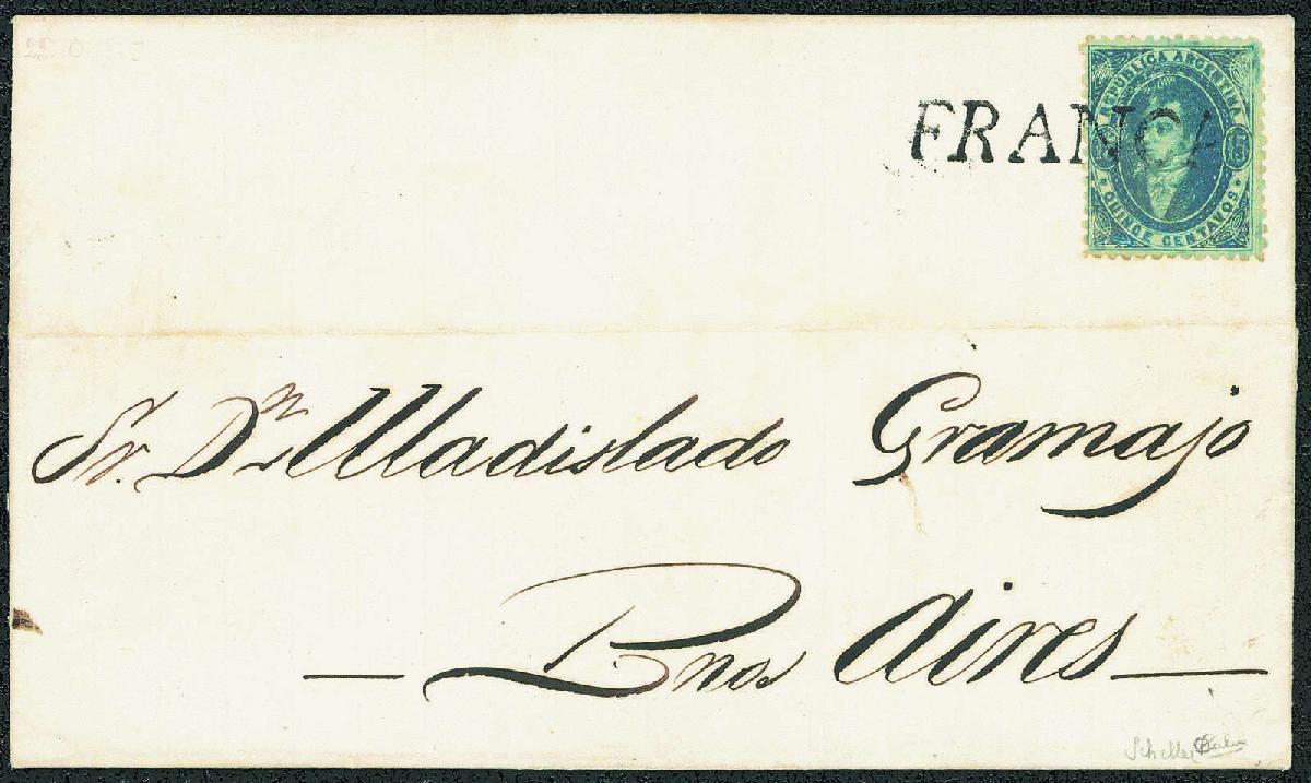 | Zusatzinformationen und Suchstichworte: | Gert Müller 116. Auktion 24. - 26. November 2022 Los 2002 Argentinien RIVADAVIA-HÖCHSTWERT ALS EINZELFRANKATUR: 15 C. blau, farbfrisch und perfekt gezähnt als wundervolle Einzelfrankatur auf Brief mit gestochen klarem Einzeiler "FRANCA" nach Buenos Aires. Einzelfrankaturen des Höchstwertes sind außerordentlich selten, in dieser erstklassigen Qualität eine Rarität der frühen Ausgaben Argentiniens! Fotoatteste Boule/Monaco und Scheller/Paris. Ausruf 1.500,00 EUR |
