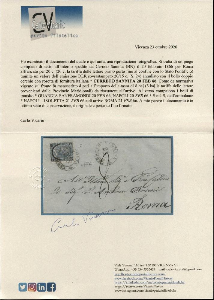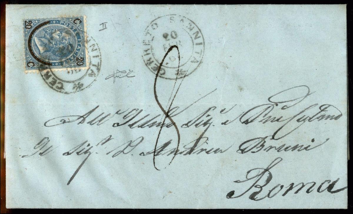| Zusatzinformationen und Suchstichworte: | A.G. Srl Auction Gallery, Public Auction 5. Oktober 2022 Los 188 Italien Königreich - Vittorio Emanuele II Vittorio Emanuele II - Cerreto Sannita (P.ti 5) - 20 cent su 15 (24 - Regno) su lettera per Roma del 20.2.66 tassata per 8 bai - al retro transiti di Guardia Sanframondi + Isoletta Napoli - cert. Vicario Ausruf 60,00 EUR |