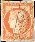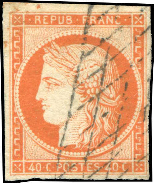 | Zusatzinformationen und Suchstichworte: | 31. Schlegel Auktionshaus Auktion 14. - 18. November 2022 Los 7019 Frankreich "1849, 40 C. Ceres rotorange mit Rollgitterstempel, voll- bis breitrandiger Schnitt, einwandfrei, sign. Bühler, Fotoattest Prof. Schollmeyer BPP (ME 550,-)" Ausruf 120,00 EUR |