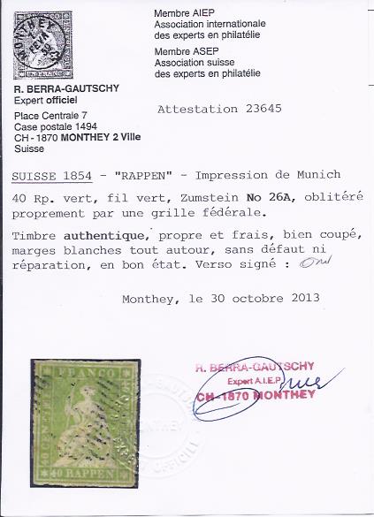 | Prüfer: | Berra-Gautschy, R. (SBPV / ASEP (Schweizerischer Briefmarken-Prüfer-Verband)) |
