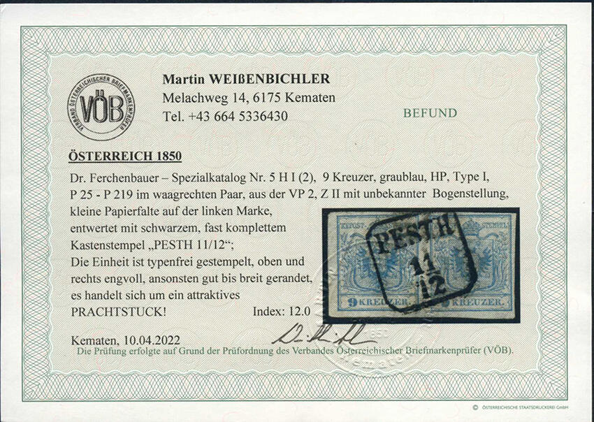| Prüfer: | Weißenbichler, Martin (VÖB (Verband Österreichischer Briefmarkenprüfer)) |