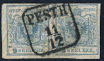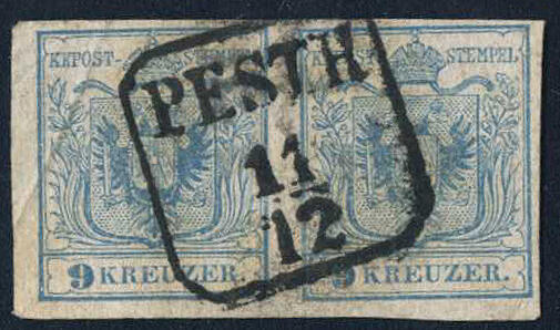 | Zusatzinformationen und Suchstichworte: | Merkurphila 51. Auktion 25. - 26. November 2022 Los 120 Österreich Ausgabe 1850 Österreich, 1850, Ungarn, PESTH, klarer und sitzender Abschlag des Kastenstempels auf interessantem Paar 5 H I, P 25 + 219, rundum voll- bis breitrandig mit einer kleinen Papierfalten auf der linken Seite, attraktives PRACHTSTÜCK mit UNBEKANNTER BOGENSTELLUNG aus der ZII, Befund Weißenbichler Ausruf 240,00 EUR |