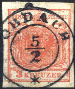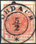| Zusatzinformationen und Suchstichworte: | 75. Viennafil Live-Auktion 29. November - 2. Dezember 2022 Los 1503 Österreich Abstempelungen Steiermark "Obdach", RDs-f (Müller 20 Punkte), 3 Kr. zinnoberrot, HP Ia-3 mit leichter Teilrippung, entwertet durch, Befund Weißenbichler, ANK 3 Ia-3 HP Ausruf 40,00 EUR |